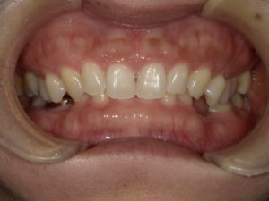 奥歯をかみしめたときに下の前歯が見えない、もしくは下の前歯で上の歯の裏側の歯茎をかんでしまう状態です。