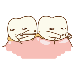歯肉溝にも歯垢はついています。歯ブラシでは除去しにくい部分なので、フロスでしっかりとお手入れしてあげましょう。