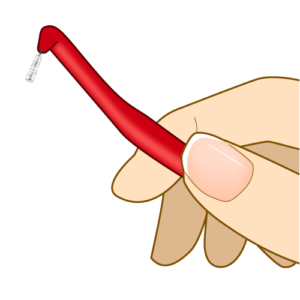 歯間ブラシを使う際は、鏡を見ながら歯と歯の間にブラシを斜めに入れ、歯面に添わせて2〜3往復前後に動かして歯垢を取り除きます。歯の側面にブラシを当てるイメージで磨きましょう。