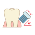 歯と歯茎の間を磨く際は歯ブラシを斜めに当てて、角度を45〜90度に調整しながら小刻みに動かします。