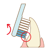 ブラシの先を、歯と歯茎と間にしっかり当てることで、歯垢をしっかり落とせます。